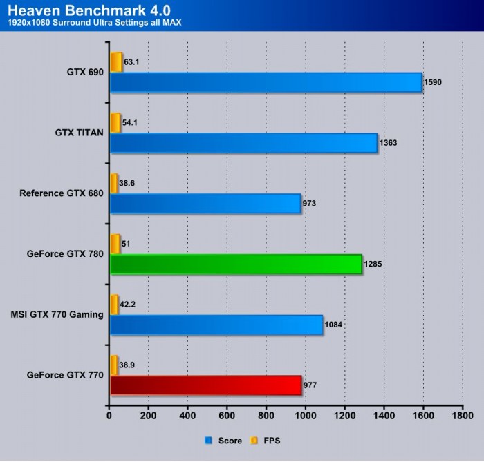 Heaven shows that the 680 is not a dead model by any means, as the 770 barely beats it by a very few points (less than 0.3 FPS).