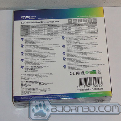 Packaged in a pretty light paper box, we get a glimpse of the physical unit from the see-through windows on the front. Additionally, we also get to see some marketing logos highlights the Armor’s durability such as anti-pressure, US Military standard, water resistant, and shock proof. On the upper right corner, there is a link directing to Silicon Power’s website