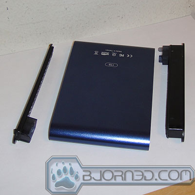 Peeking from the side, and we can see the hard drive is also being secured with two pieces of rubber to absorb any impact.