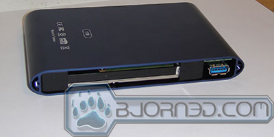 On the left we find the single USB 3.0 port with a flap protective cover. On the right side, there is a small compartment where the aforementioned USB cable is hidden. It’s a nice touch from Silicon Power to neatly hide the cable. However, we feel that the cable could have been secured to the drive a bit more since it is just being held by the plastic tab. So if it happens to fall out from your pocket, it is quite easy to lose the cable. Additionally, the cable that is included is very short and rigid and makes it a bit hard to use since you would have to place the drive very close to the PC.