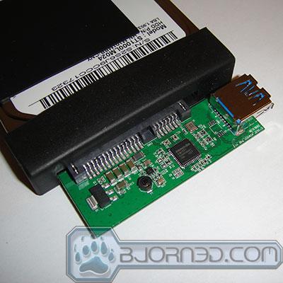 A rather small PCB with USB controller is being used in the Armor A80. Here we can see ASMedia ASM1051 USB controller is being used. The controller provides the needed interconnect between the USB and the SATA. It is compatible with SATA 3 Gbps and 1.5 Gbps only so even if you install a 6 Gbps drive, you would still be limited to 3 Gbps speed.