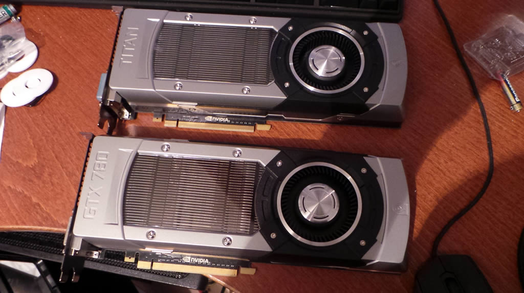 The Zotac GTX780 uses the reference design and looks exactly like the GTX Titan. In fact, as you can see from the image it is easy to mistake them from each other if you do not look closely.