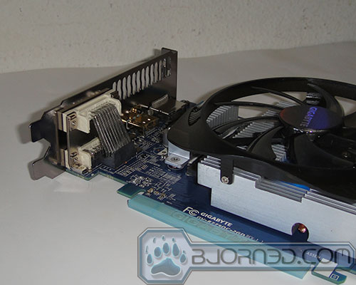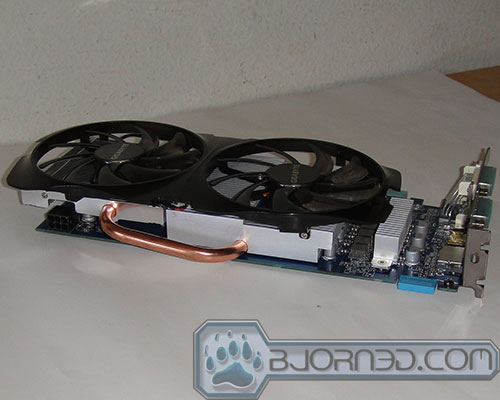 The card is being powered by 5+1 phase power design with solid capacitors. Gigabyte placed a small heatsink on top of the PWM and the cold air pulled from the fan are directed to pass through the heatsink to help with heat dissipation. Using Gigabyte’ Ultra Durable technology, the card uses low RDS MOSFET, Ferrite Core Choke, and all solid capacitor for lower power loss, cooler operation, and longer component life span.