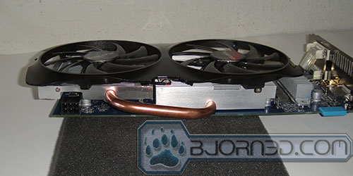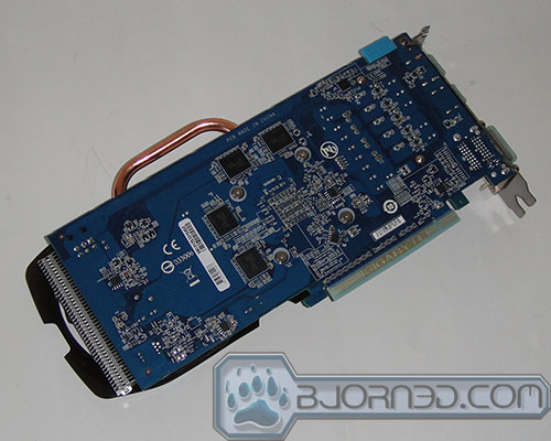 On the top of the card, we got the 6-pin PCIE power connector and the CrossFire connector. The HD 7790’s maximum TDP is only 10 watts higher than the PCI Express connector’s 75W so it is not going to need that beefy power supply to run the card. However, the card’s minimum requirement is 450W according to Gigabyte’s website but it is very likely that you would still able to run the card with a bit lower wattage PSU provided that it is from a reputable brand with plenty of amperage on the +12v. Graphic cards draw most power from the +12V, it is the most critical rail to check.