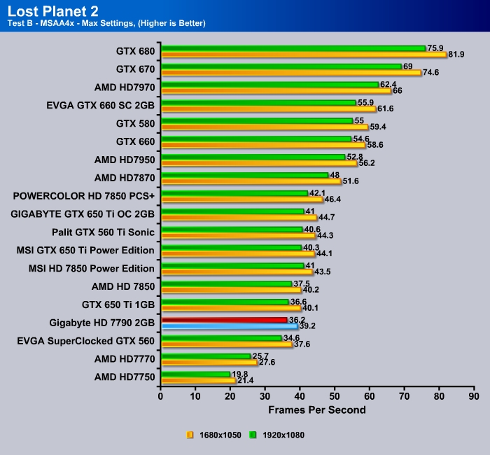 In the Lost Planet 2, the HD 7790 and the GTX 650 Ti are essentially tie.