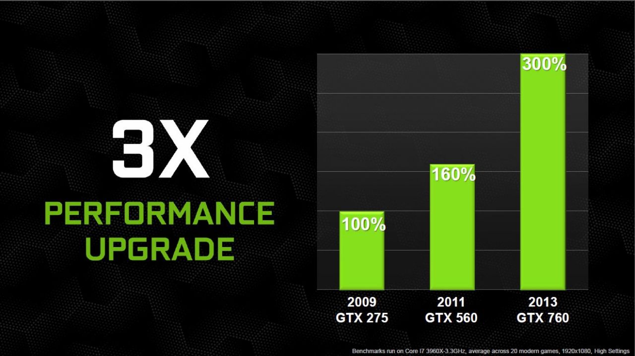Being a 7 series means it should knock the previous version out and Nvidia knows that most consumers don’t buy cards from every generation except those who always are on the ragged edge and want the newest and best. Users in this segment will usually keep a card through a couple generations, if not more, so they want to show users of even the oldest cards what they will see with this card. Users can see an up to 300% increase from a 275 and up to 140% over a 560, which was an extremely popular card.