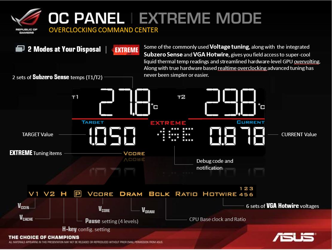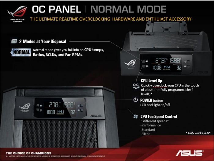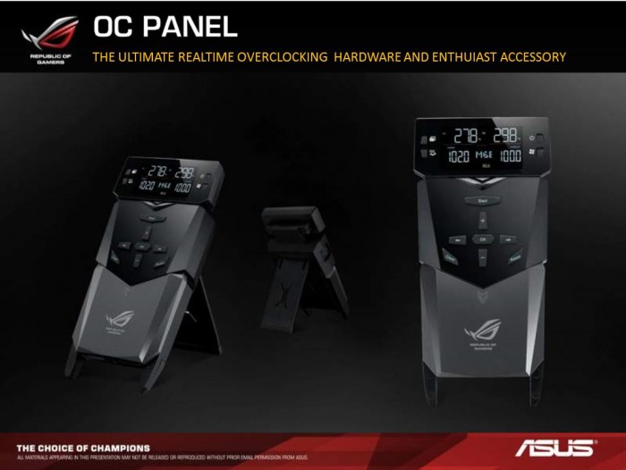 The ROG OC PANEL is the next new thing as we saw the OCKey introduced on the Rampage IV Extreme then on the Maximus V Extreme, now you see the next step in the evolution of ultimate overclocking peripherals.