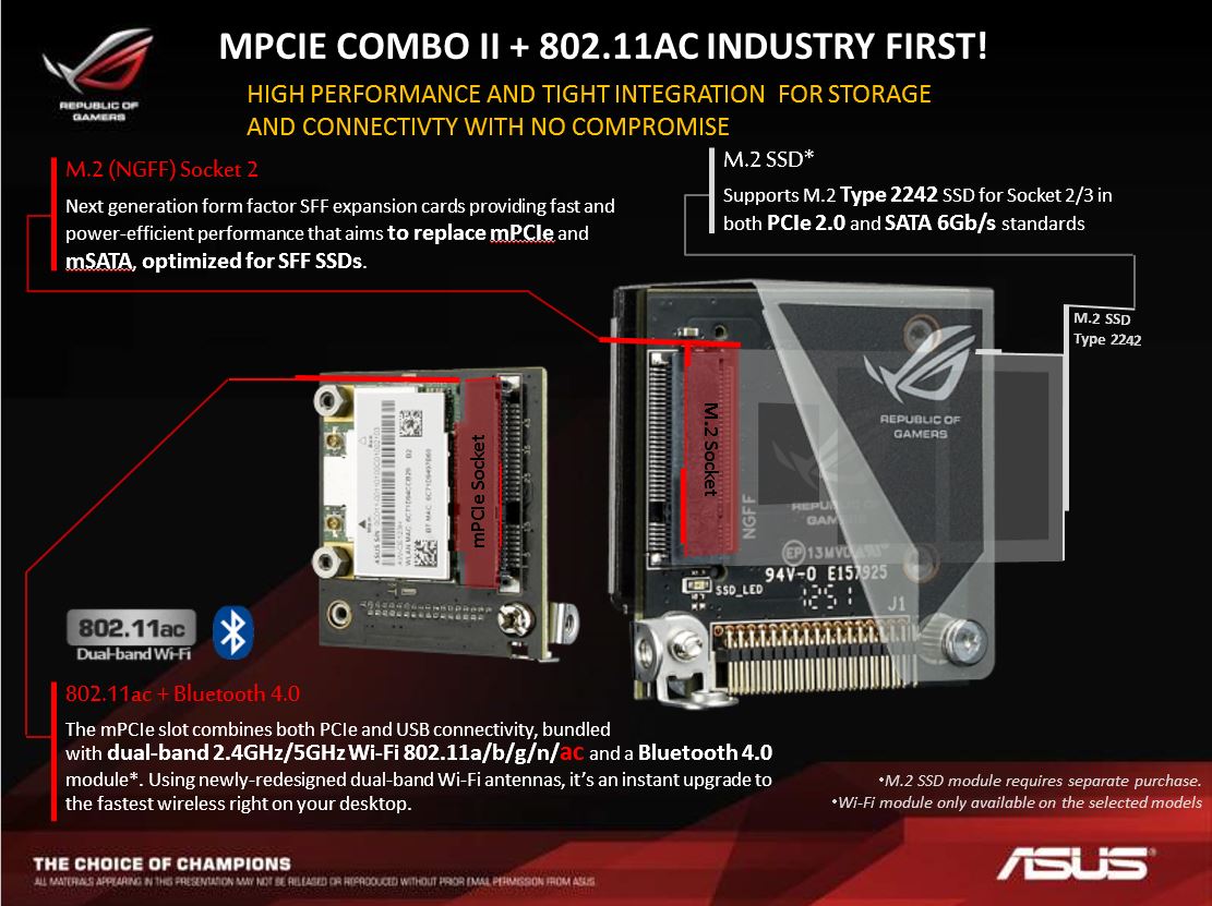 mPCI-E Combo Card (WiFi AC/BT 4.0 mPCI-E card included)