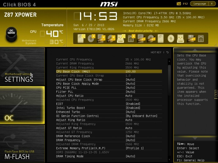 MSI is proud to tout the Xpower’s ability to hit over 3GHz on the memory frequency. Keep in mind that with Haswell these frequencies are possible but you will still need DIMMs which can pull that off. We quickly found that CFR based sticks did not like to move a lot but MFR based sticks clock much more willingly on Haswell based systems.