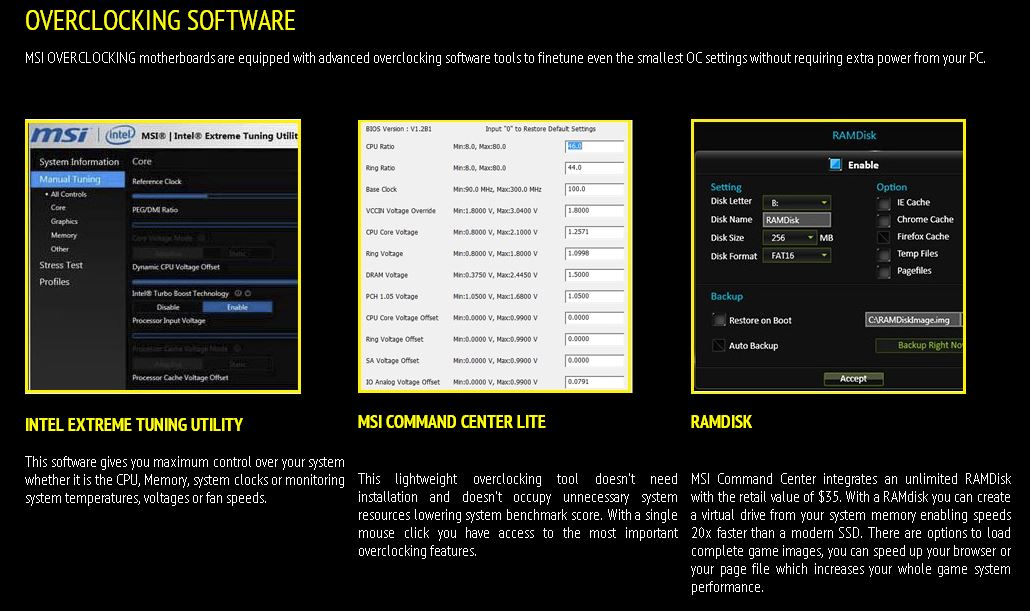 MSI really put some time into selecting software and optimizing it for optimum overclocking performance.