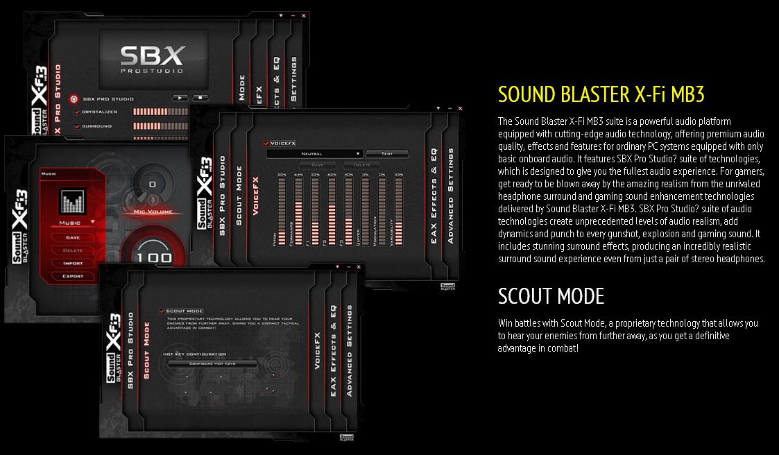 With the Xpower board there is also X-Fi software designed to enhance the audio performance even further. This is like an Equalizer on steroids as there are room effect settings, audio enhancements along with pro studio enhancements to allow for even better audio quality and clarity.