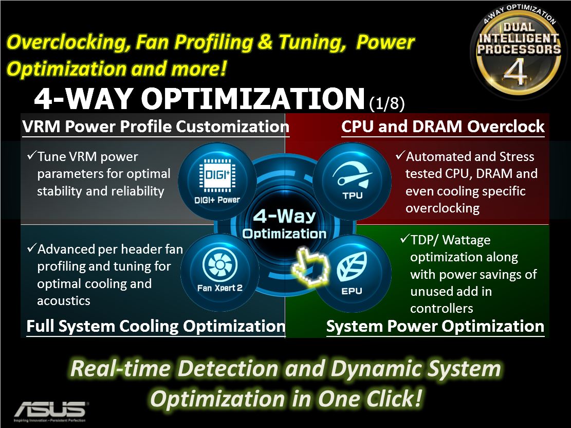 ASUS has implemented a new “4 Way Optimization” feature in many of the new 8 series boards.