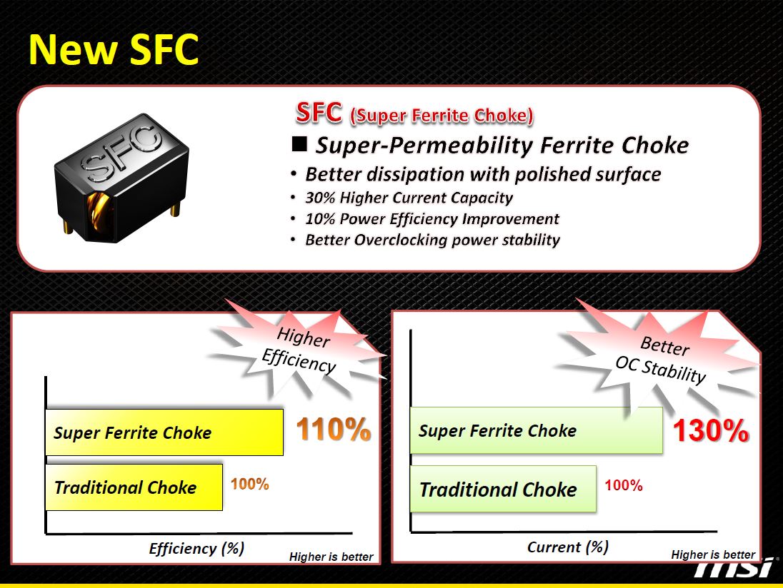 MSI Offers a higher end power solution via a larger VRM feeding both the GPU and memory components by increasing the Memory VRM by 100% or double the phase count to two and increasing the phase count for the GPU by 50% or two extra phases for a total of 6 phases to ensure more than enough power delivery can be pushed to the GPU for even better overclockability and more importantly better overclock stability.