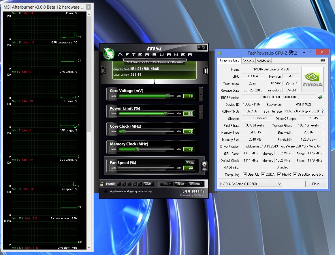 Due to an incoming monetary benefit coming my way in the relative near future, I’ve been looking forward to upgrading from my MSI GeForce 460 GTX 1GB card. The card’s not dead nor close to it. I just want more performance that’s not a SLI solution seeing as not all games support SLI. My 750W PSU should be able to handle the MSI GeForce 760 GTX Hawk well. Sure the $290 price tag is a tad steep, but for the reliability I’ve long seen in my current MSI card, I’m willing to pay the little extra for legitimate additional reliablity. I’m not really into OCing so that part of the author’s article doesn’t really interest me. It’s the rest of the article that interests me greatly. Thanks, Shannon Robb for a well written article on this card. Since my incoming money isn’t a vast amount, but will allow me to upgrade my main computer’s graphics card and additional RAM only, I’m glad there are people who’ll actually pay attention to those of us who are in the “middle of the road” gaming crowd.