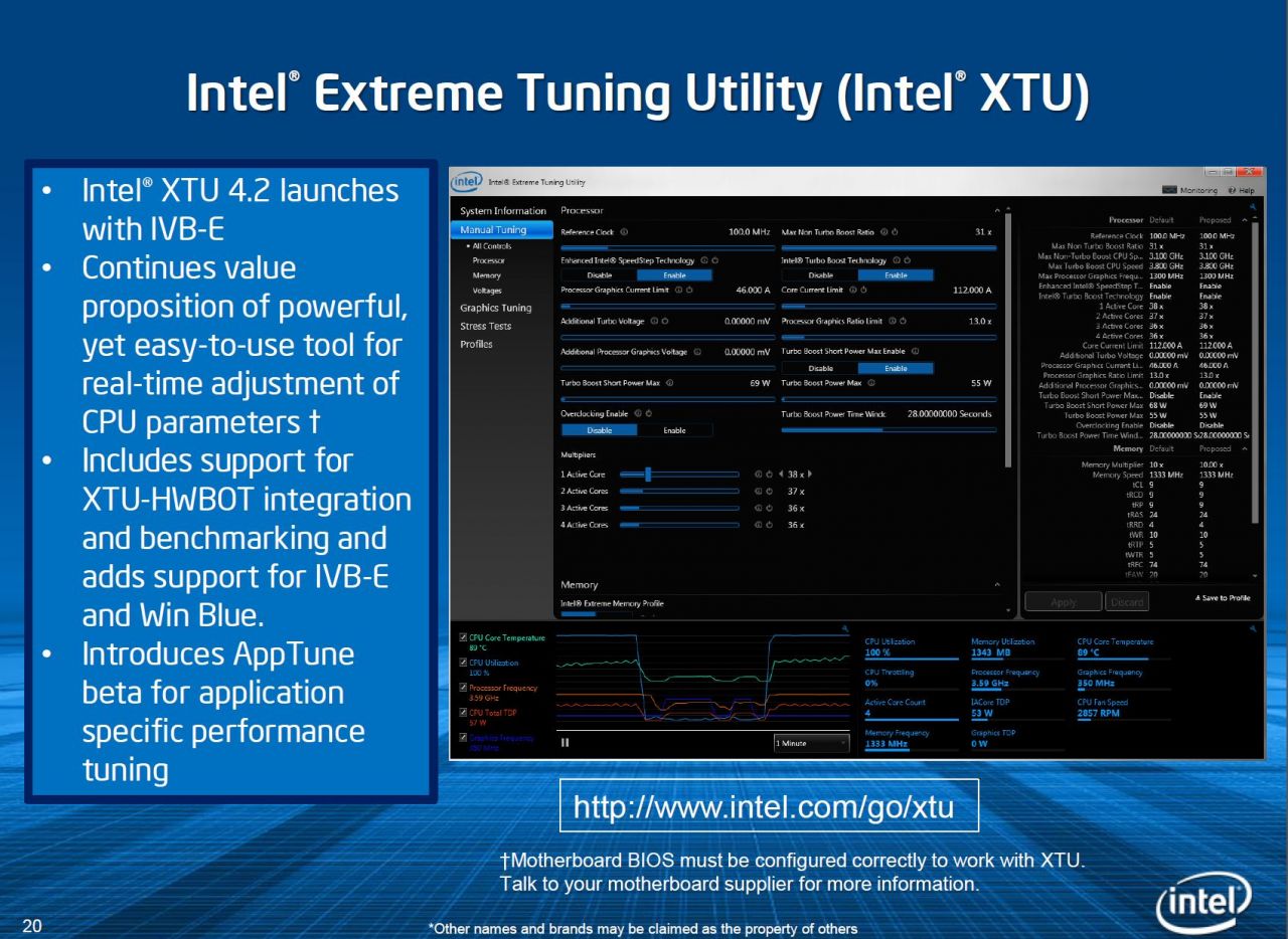 Intel has had its XTU utility for quite some time and while I have used it I didnt find it that great as I was used to ASUS AISuite software which is very nice and usable but Intel’s new XTU software is looking very nice and even now has a HWBot approved benchmark so that you can share settings and results on one of the largest collective overclocking benchmark score repositories around.