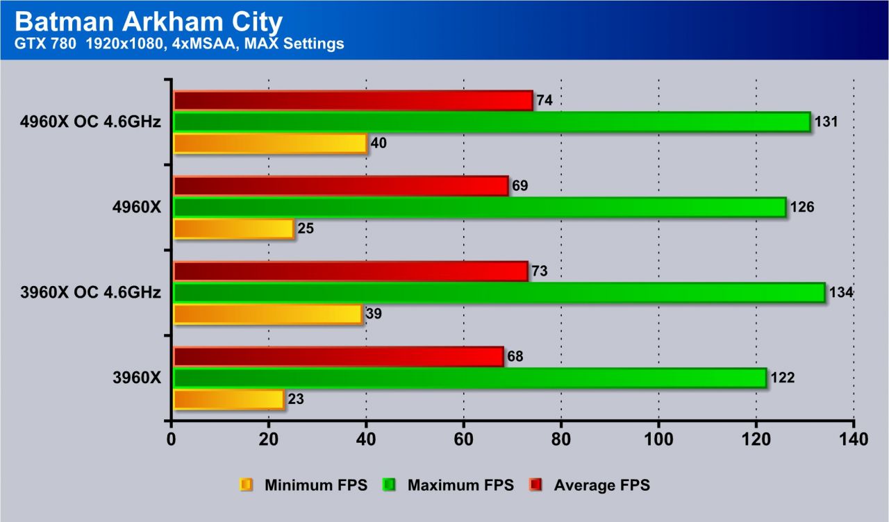 In Batman Arkham City we actually see soem increases in performance via overclocking which tells me that either this game is very heavy on the bus but more likely it simply uses more CPU than some of the other test games.