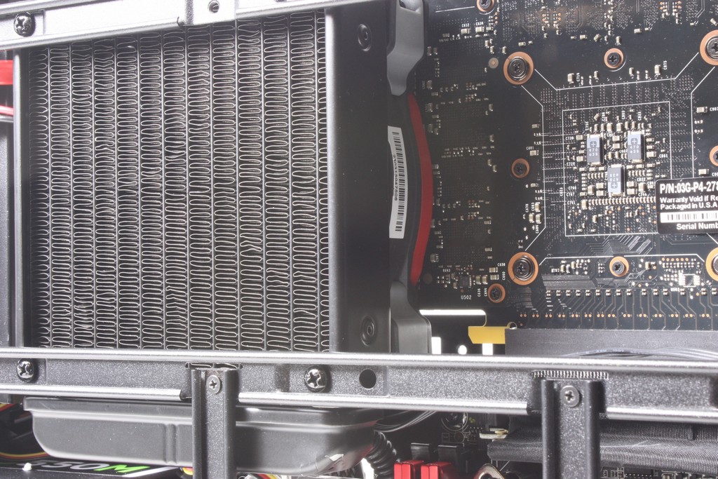 Finally moving inside you can see that this small chassis gets crowded really quickly but Cyberpower really optimizes space usage which allows for fitment of hardware that some full midtower chassis may have trouble with!