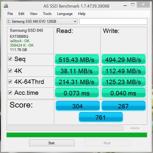 The Zeus Mini comes with a Samsung 840 EVO 120GB SSD in place for boot/OS duties and it makes quick work of getting things up and running. as you can see here even in synthetic non ATTO testing it pulls strong numbers eclipsing 515MB/s reads with Writes sequential being just shy of 500. Also 4K is very nice here which is where you really want to pay attention as this being an OS drive will deal alot more with tiny files all the time rather than large sequential transfers.