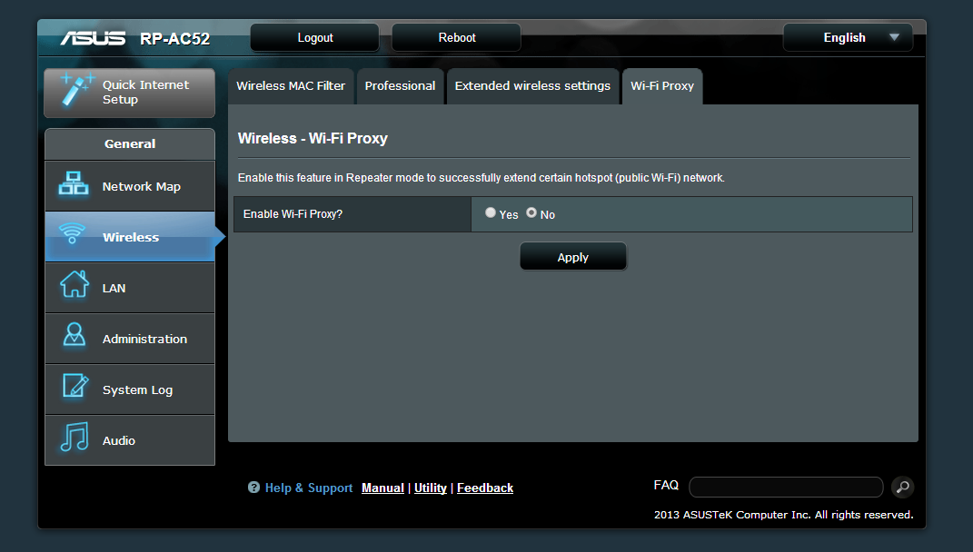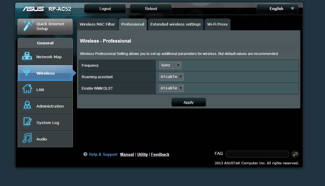 Installing the ASUS RP-AC52 is pretty easy. You can either just use the WPS-button on your router and the RP-AC52 or you can connect to the existing wifi-network on the extender, access the special url that Asus specifies in the manual and then configure it there. It allows you to choose which 2.4 GHz network and which 5 GHz network you want to connect to and then what the new wireless networks should be named.