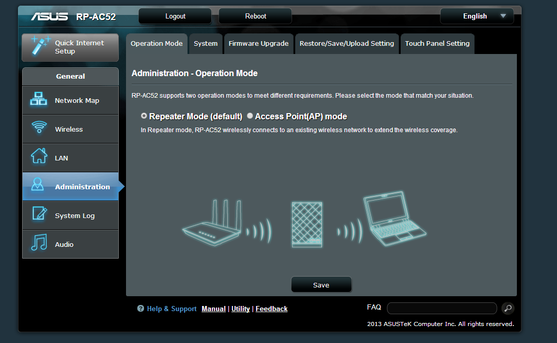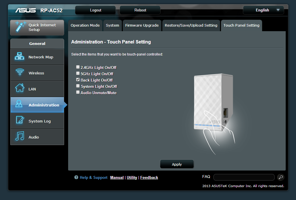 You can afterwards connect to the extender just like any Asus network device and update the firmware or change settings. When setting up the extender you should sit close to your router and then move away and find the best spot to place it. There is a row of blue led-lights that shows the strengh of the 2.4 GHz and 5 GHz network so you can find a good spot. The idea is to place the extender so it still gets a strong signal from the network you want to extend. If you got an Android-device there are several really great tools for watching the signal strength of various networks including Wifi Analyzer and Netgear Wifi analytics. IOS users are out of luck unless you jailbreak as Apple do not like apps that can sniff out networks.