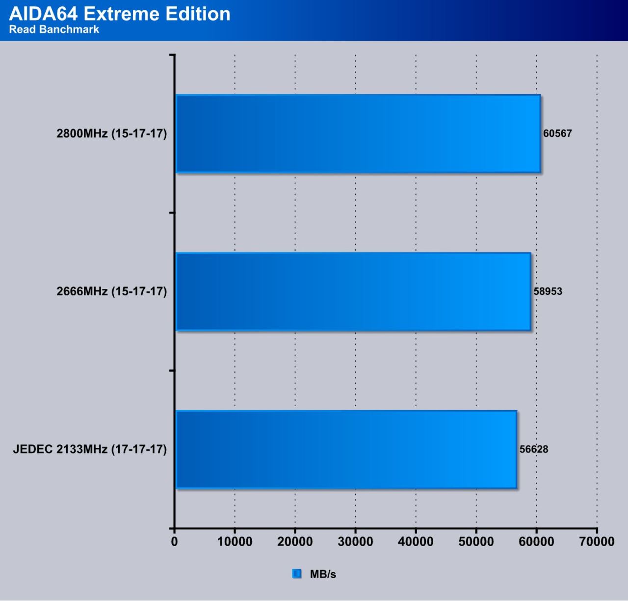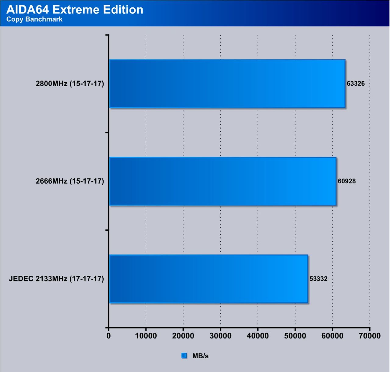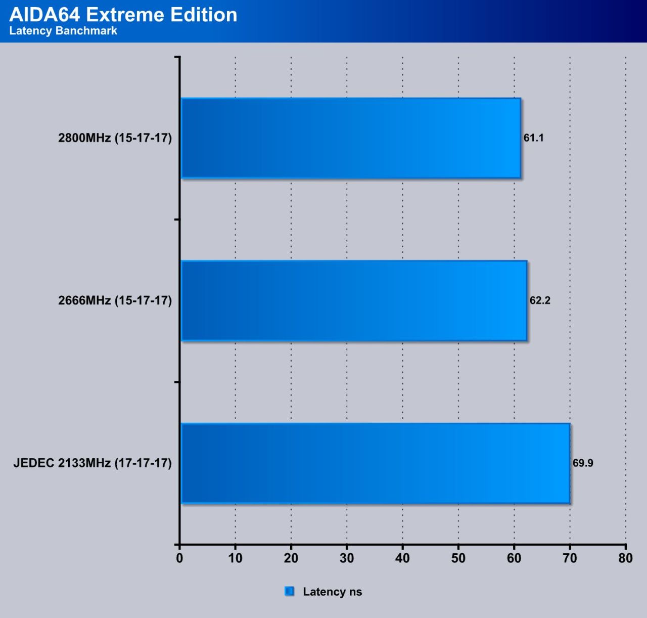 AIDA64 shows good results for the DDR4 kit now that the program has been patched to work properly with the new platform and its memory controller. you can see when going from JEDEC to 2666 then 2800 how it affects performance.
