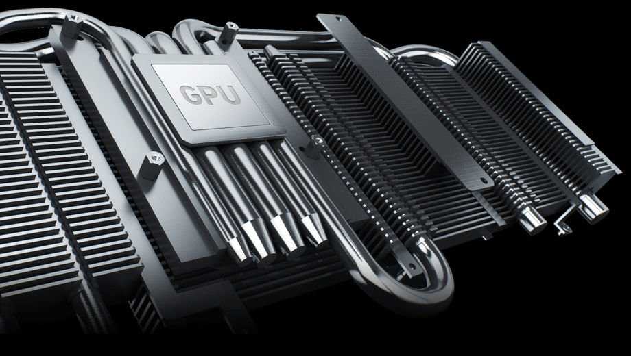 Now at first glance we see a GPU that is not only a full-sized GPU this thing is huge and full length. The three 0dB fans looked a little off but those big beautiful 10mm heatpipes quickly drew our eyes giving us a moment of Geek Eye Glaze.