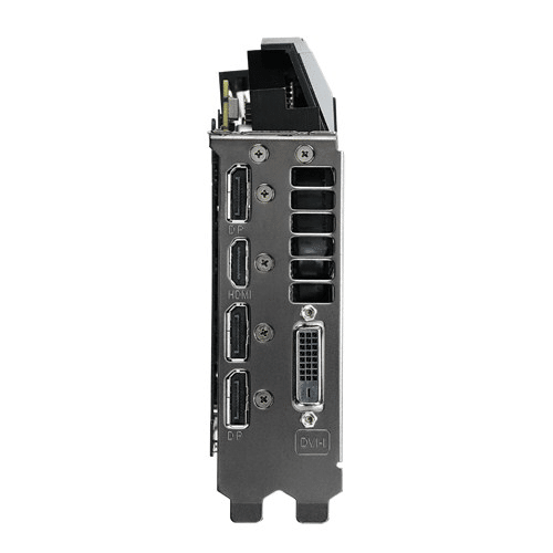 Catching the business end we get 3 Display-port (full-sized) a HDMI and a DVI-L port which should cover most modern monitors. If you happen to have a VGA 15pin DSUB monitor you will need to find an adapter as none is provided in the bundle.