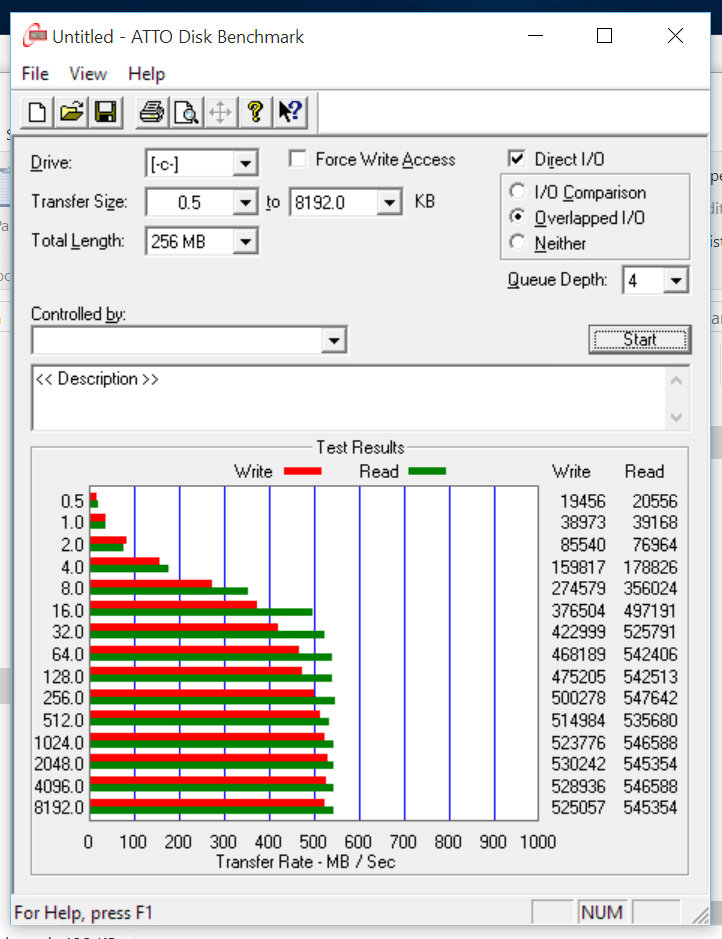 In ATTO Direct I/O with Overlapped I/O produces the best benchmark numbers and in general is the test used by most major manufacturers to gauge the speed of their drives. ATTO uses compressible data and gives the manufacturers good benchmark numbers. The 65 GB SSD that is included with the Zbox Nano CI540 Plus performs in par with a 256 GB Samsung Evo 840 SSD.
