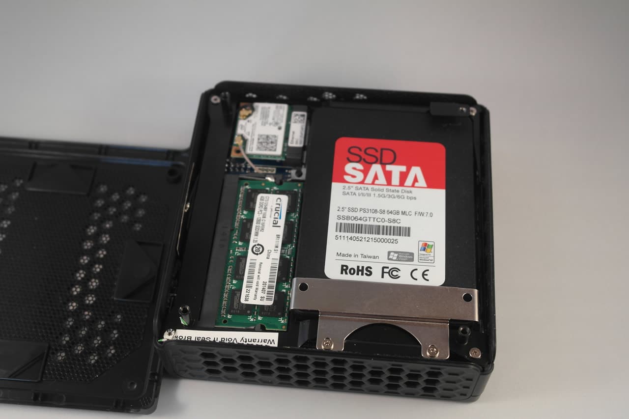 The Zbox Nano CI540 actually comes in two versions. The one we are reviewing is the Plus-version which includes a SSD and 4 GB of memory. The non-plus version omits that and lets you choose both the size of the memory as well as what SSD to put in. In our case we got the version with a 64 GB SSD: