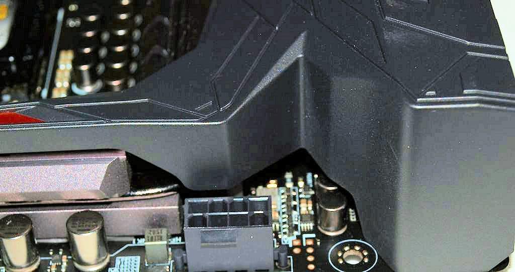 The CPU power connector is squirreled away behind the plastic