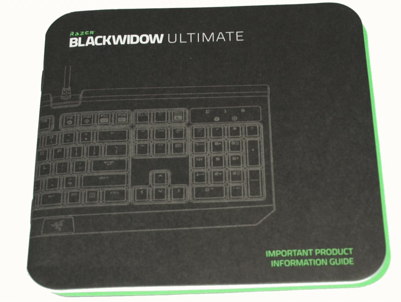 With the Razer BlackWidow Ultimate you get a manual and a couple of Razer Logo stickers. You may want to keep the manual around until you have learned the FN key combos for the special features on the board.