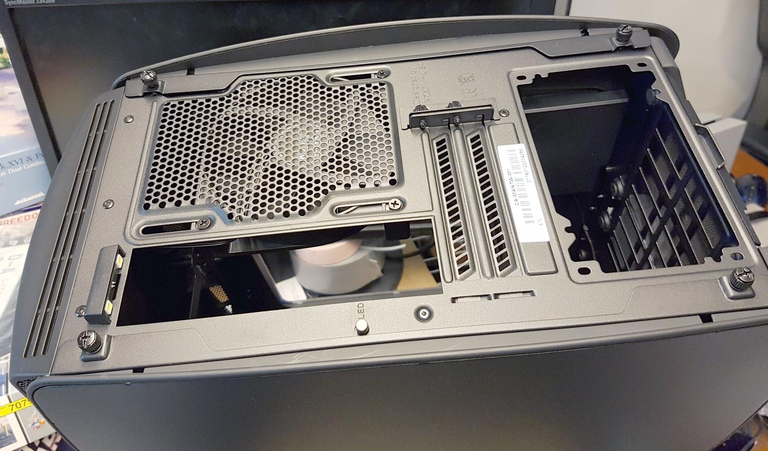 You can either place a 3.5″ HDD at the bottom of the case as we have done here or attach it to the back if the case further up in the image. Neither spot has any rubber to minimize vibrations. It does feel like HDD’s are nt the top priority of this case.